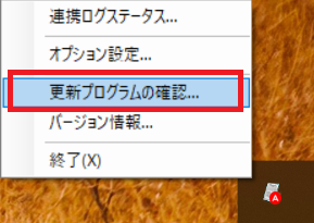 8. 新しい更新プログラムを確認するため、タスクトレイからバックアップ連携アプリを選択して、右クリックメニューから[更新プログラムの確認]を選択します。