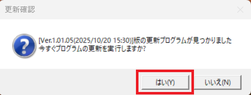 9. 下図のように「更新プログラムが見つかりました」と表示された場合、そのまま[はい]を選択します。