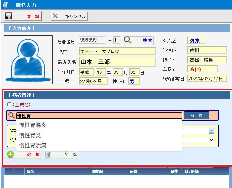 (3)[病名]画面が表示されます。