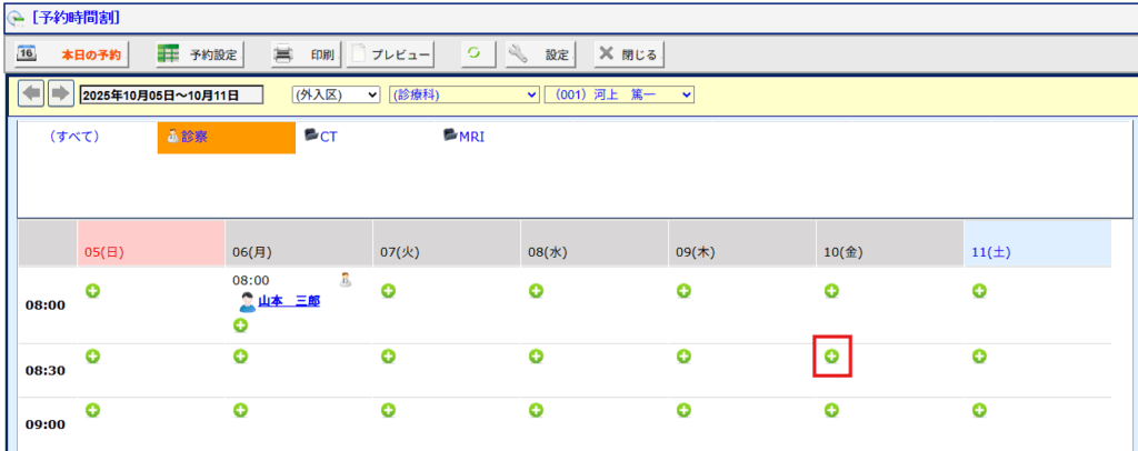 (3)カレンダーより予約日時の[+]を選択し予約を登録します。