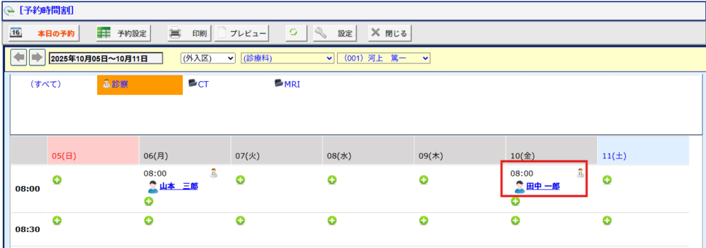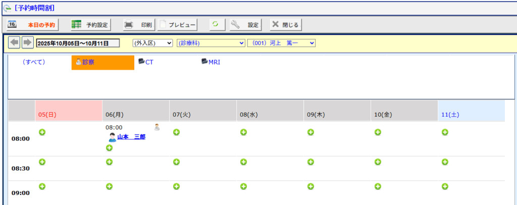 [予約項目] 予約項目を指定して表示します。※画面の例としては診察・CT・MRI