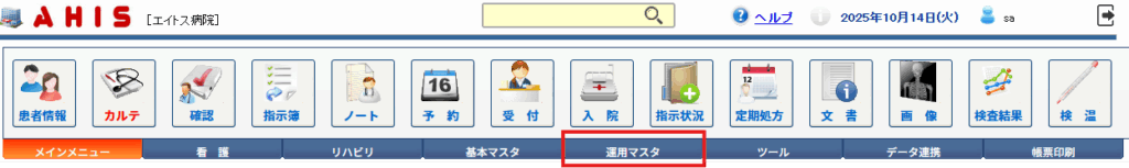 (1)トップメニューより[運用マスタ]を選択して下さい。