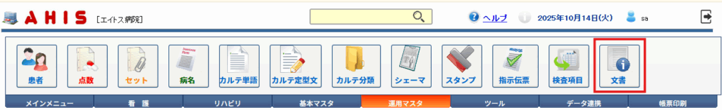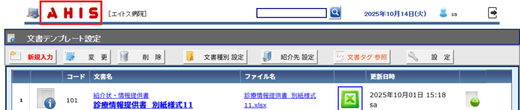 (6)文書テンプレート設定画面が表示されます、[AHIS]を左クリックして下さい。