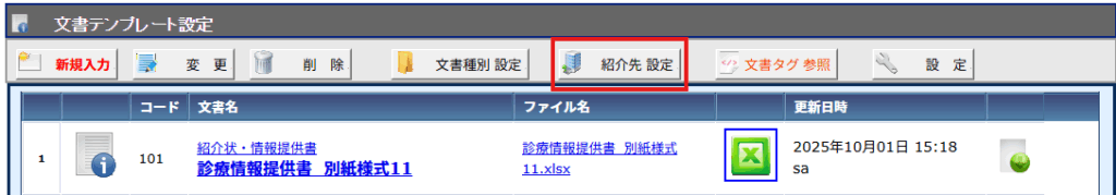 紹介状・診療情報提供書などの定型テンプレート文書における紹介先の登録方法について説明します。