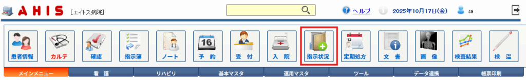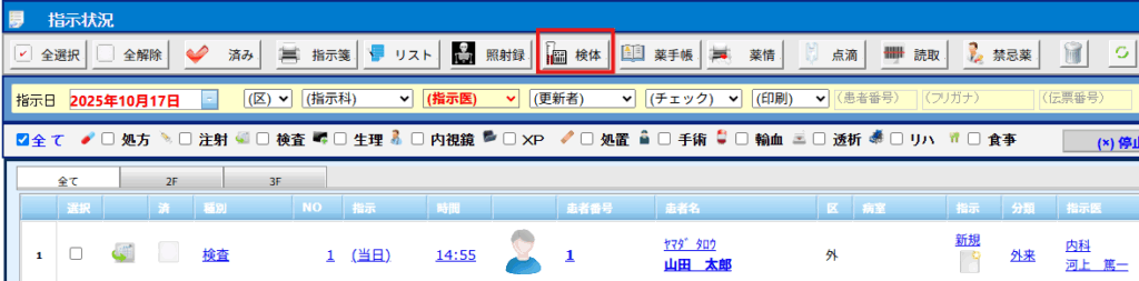 (2)指示状況画面が表示されますので[検体]を選択して下さい。