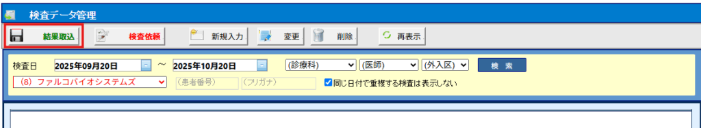 (4)検査データ管理画面が表示されます。[検査取込]を選択して下さい。