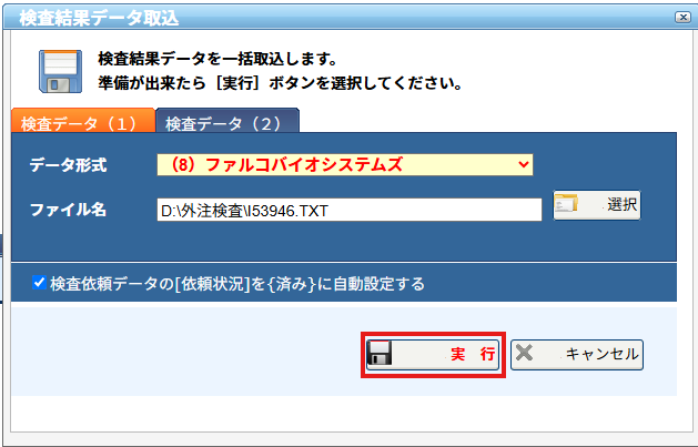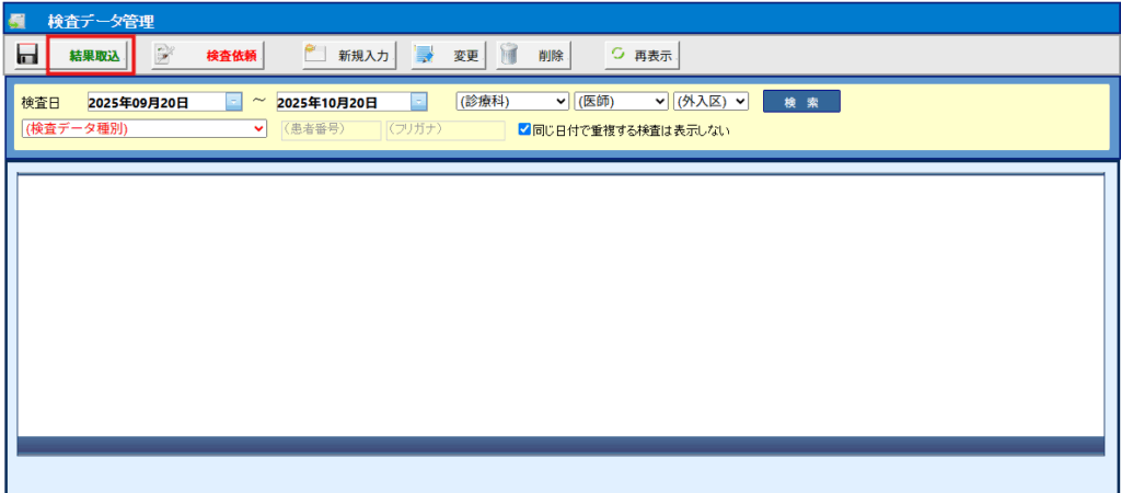 (1)検査結果データを取り込む際は、メニュー画面から[検査結果]を選択してください。
