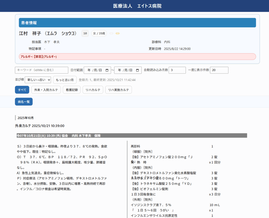 カルテ保存時などのタイミングで自動変換されたHTMLカルテを、過去カルテのメニューからワンクリックで参照するための設定手順を説明します。