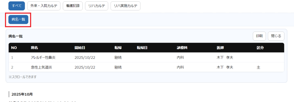 3. 患者番号に該当するカルテがある場合、下図のようにHTMLカルテが表示されます。