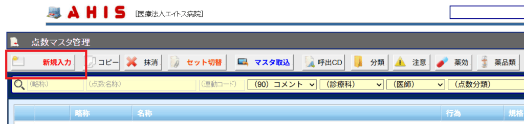 1. [点数マスタ管理]画面のメニューから[新規入力]を選択します。
