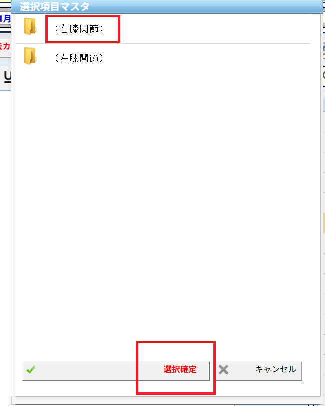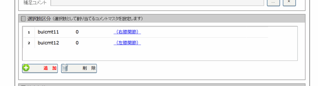 ここでは関節腔内注射の注射部位を入力するための選択肢マスタを作成する手順を例にして説明します。