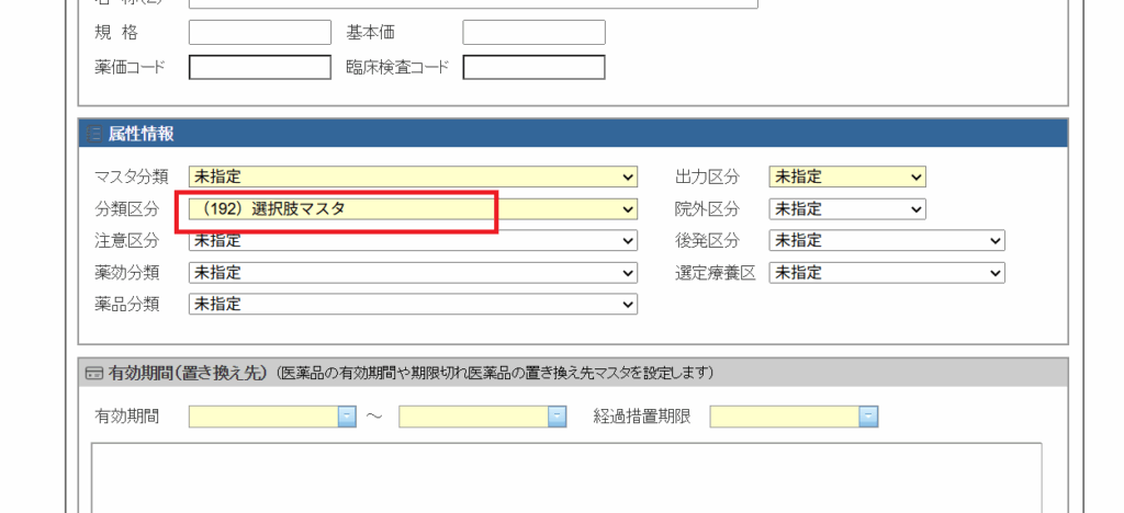 3.[分類区分](192:選択肢マスタ)を選択してください。