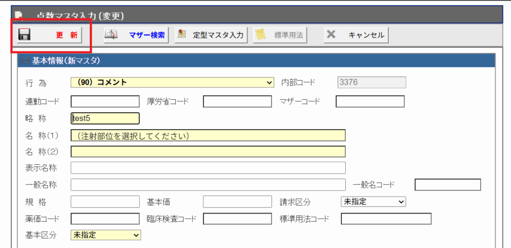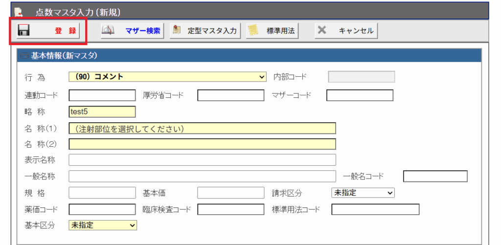 4. ここまで設定できたら、一旦マスタの登録を実行します。