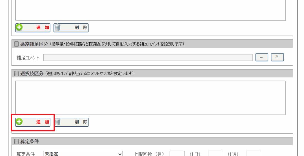 6. 下図の[選択肢区分]にある[追加]を選択します。
