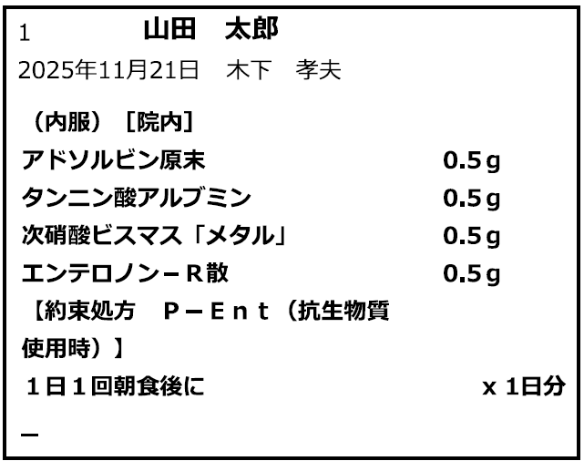 処方ラベルは、オーダリングシステム運用時や電子カルテ導入に伴う紙カルテ併用時に、電子カルテへ入力した処方情報を印刷して紙カルテへ貼付できる機能です。これにより、処方内容を紙カルテへ手書きで転記する作業を軽減できます。