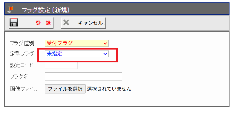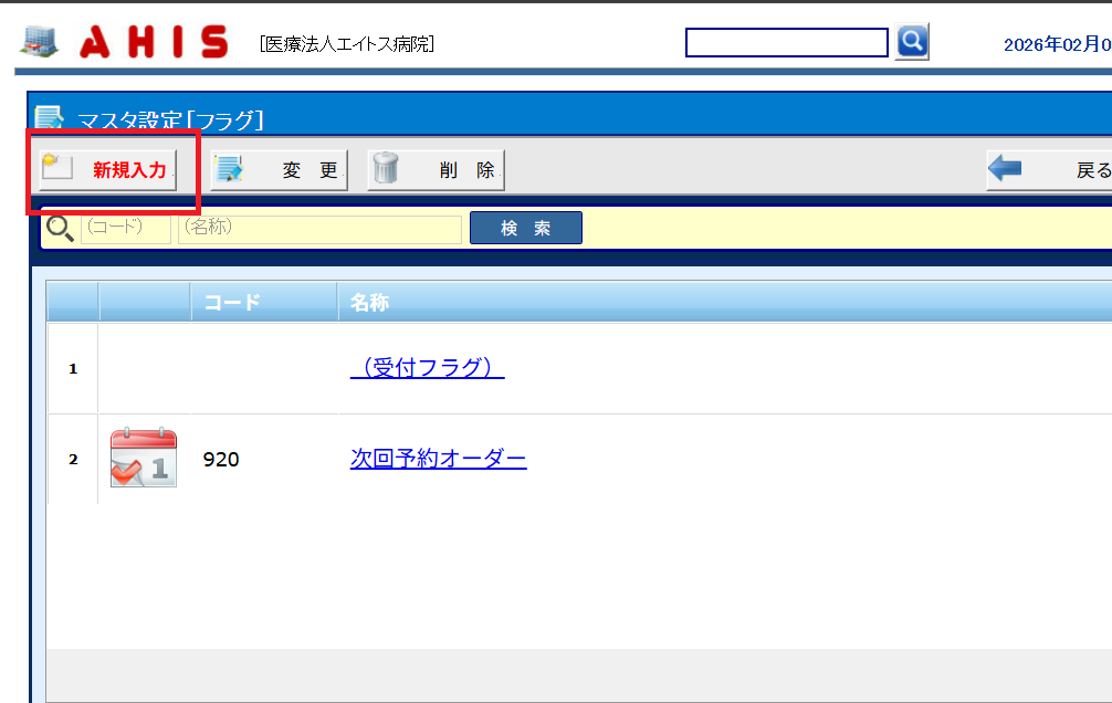 2. [フラグマスタ設定]画面のメニューから[新規入力]を選択します。