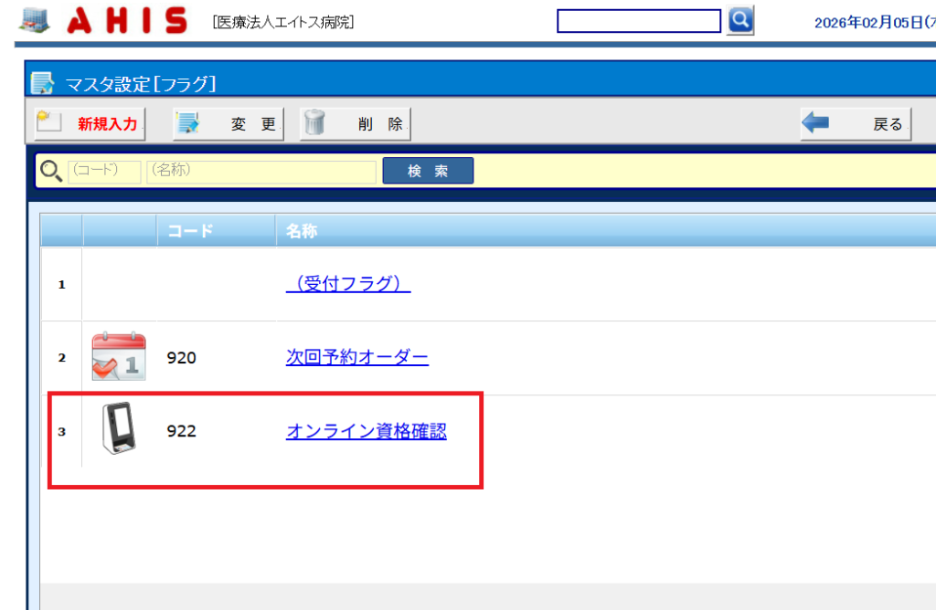 5. 下図のように(オンライン資格確認)のフラグが追加されます。