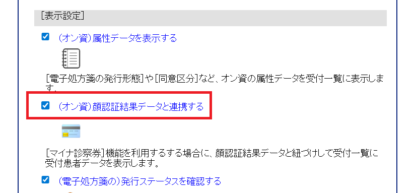 2. [オプション設定]画面の[表示設定]の[(オン資)顔認証結果データと連携する]にチェックを入れてください。