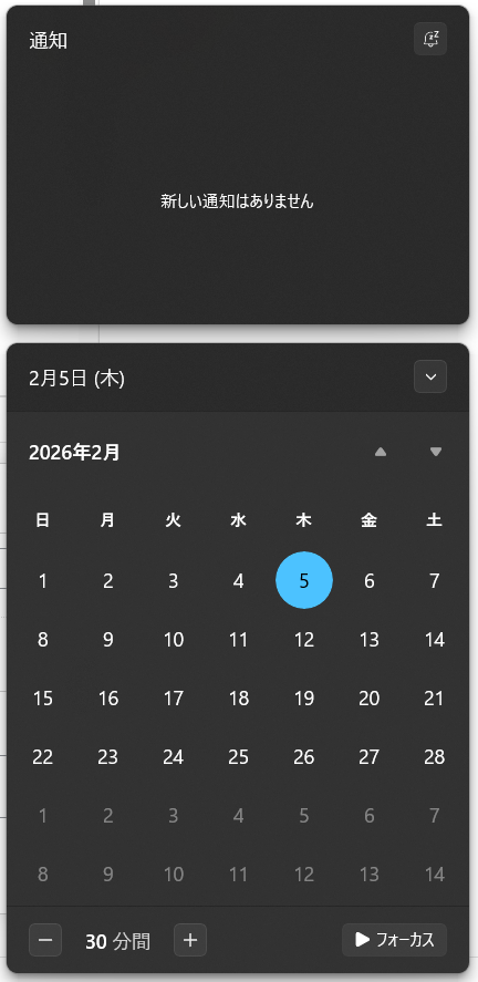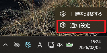1. 画面右下の時刻表示エリアの箇所を右クリックして、設定メニューから[通知設定]を選択します。