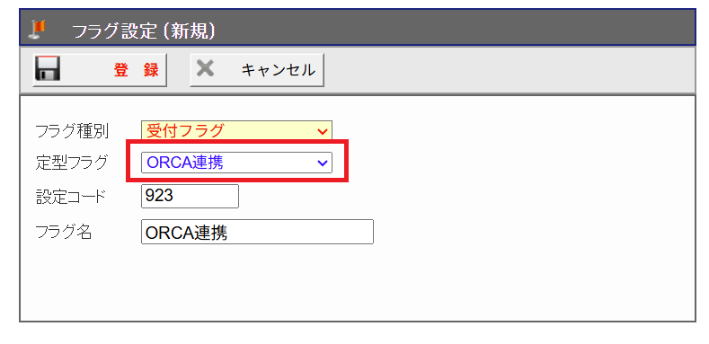[定型フラグ]から(ORCA連携)を選択します。